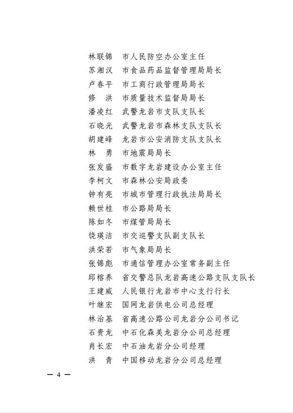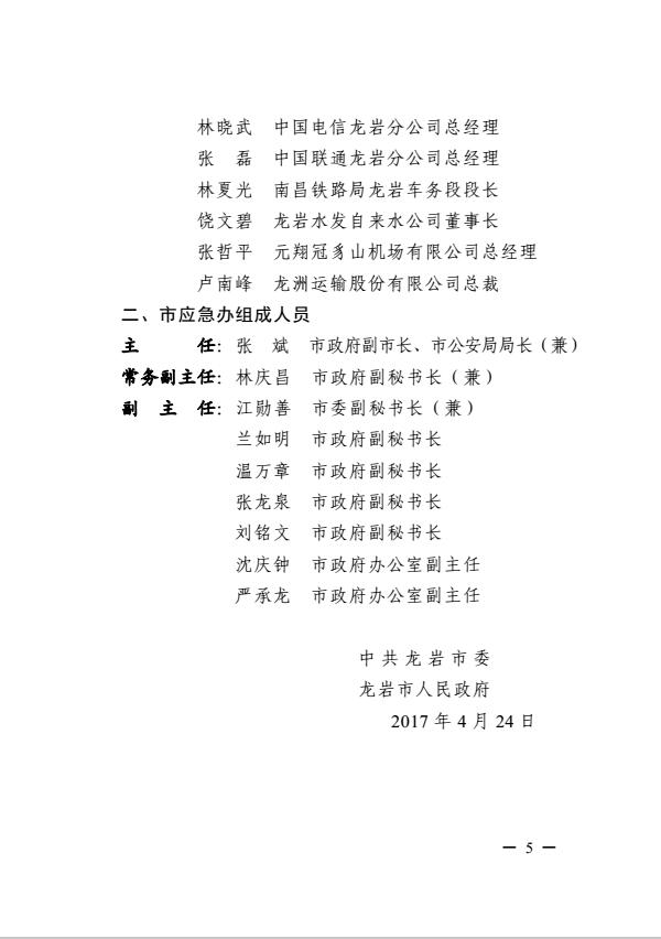 市委关于调整龙岩市突发事件应急委员会及龙岩市突发事件应急委员会办公室成员的通知(岩委【2017】40号)