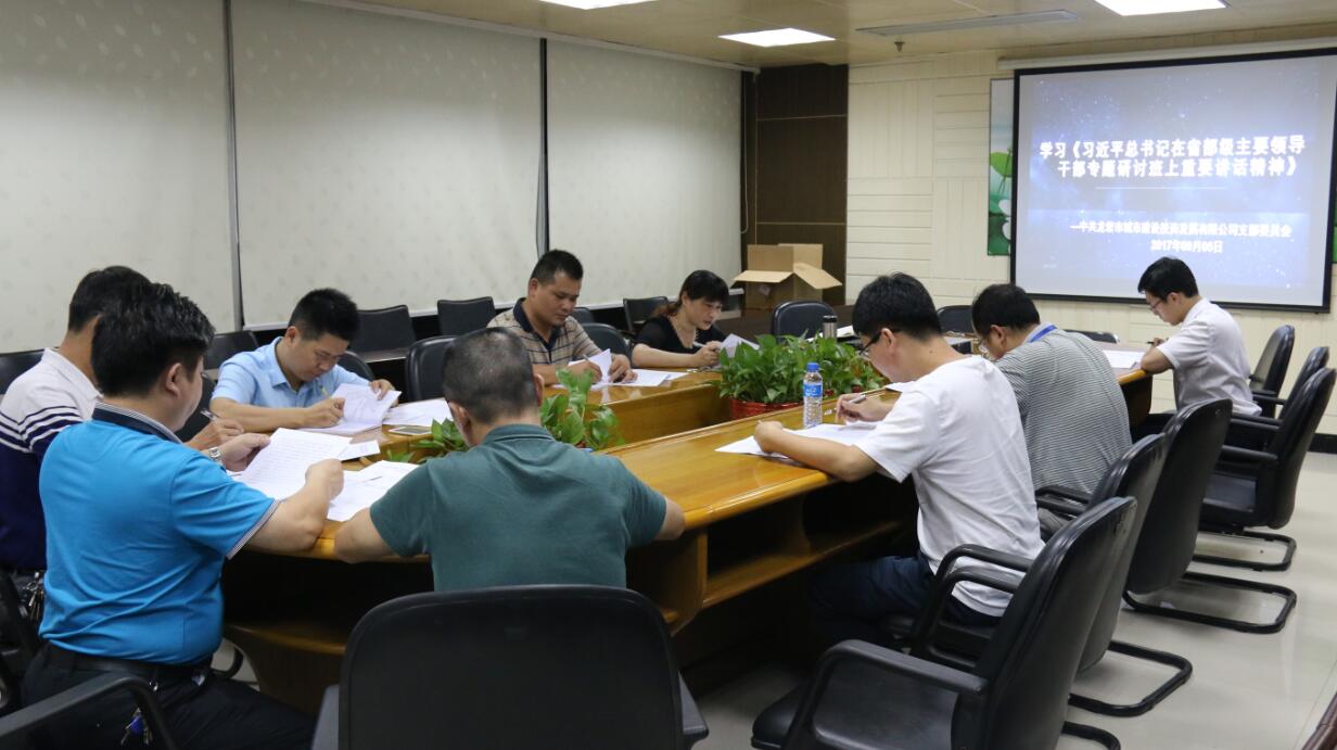 会上,刘有才书记组织全体党员和积极分子共同学习习近平总书记在省部级主要领导干部专题研讨班上重要讲话精神。会议要求,各项目要讲政治、守纪律、守规矩、抓廉政、转作风,把贯彻重要讲话精神与脱贫攻坚、项目建筑等重点工作结合起来,确保工作不断、力度不减、劲头不松;要进一步强调政治纪律、政治规矩,强化责任担当,形成强大合力,不断增强我司上下谋求发展的信心和决心;要认真学习、深刻领会,切实把思想和行动统一到讲话精神上来,以强烈的责任感和使命感,推动各项工作落实,以优异成绩迎接党的十九大胜利召开。