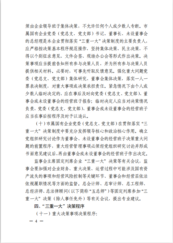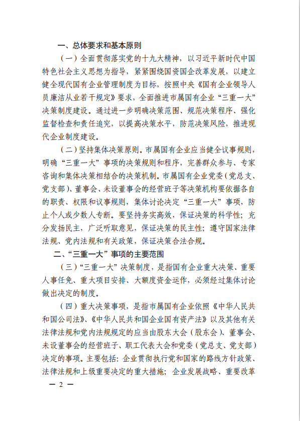 关于进一步规范市属国有企业贯彻落实“三重一大”决策制度实施意见(游艇会yth0008党委[2020]21号)