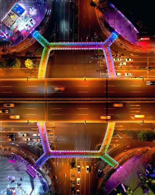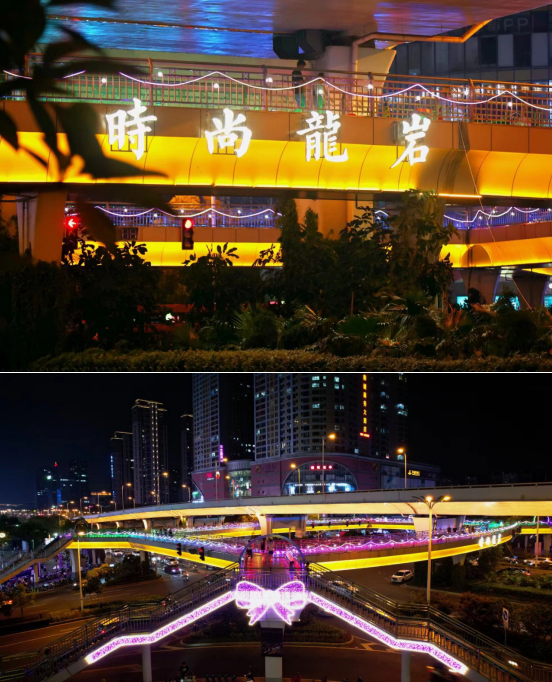 龙岩大道万宝广场人行天桥夜景文化AYX爱体育完工