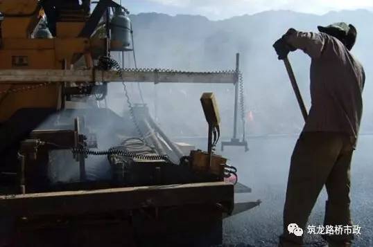 (6)检测松铺厚度是否符合规定,以便随时进行调整。摊铺前熨平板应预热至规定温度。摊铺机熨平板必须拼接紧密,不许存有缝隙,防止卡入粒料将铺面拉出条痕。