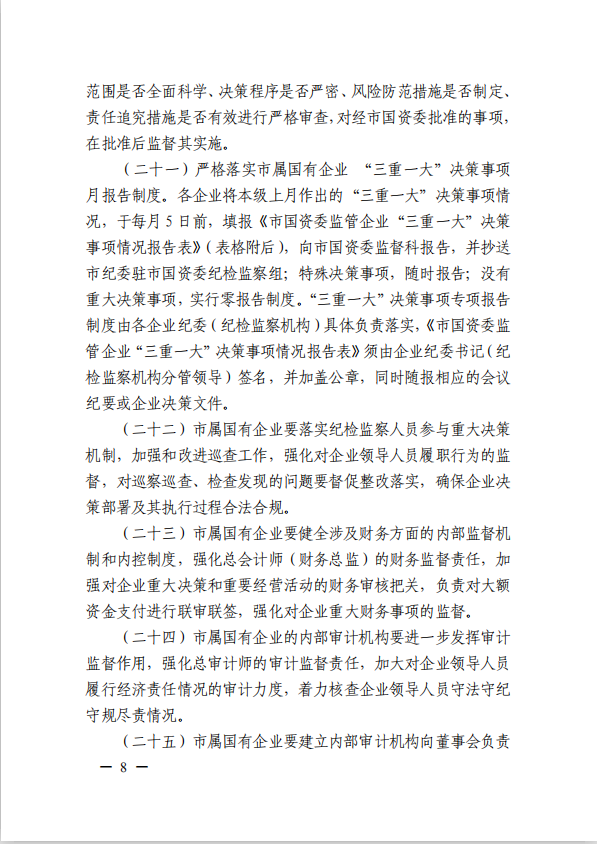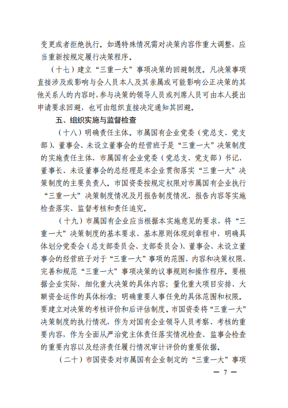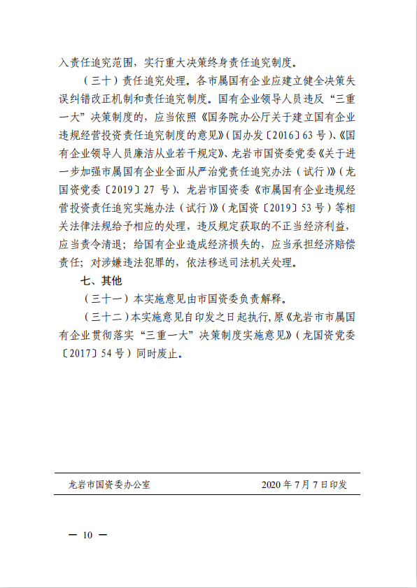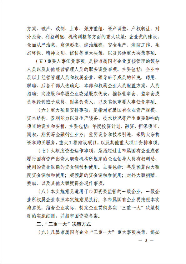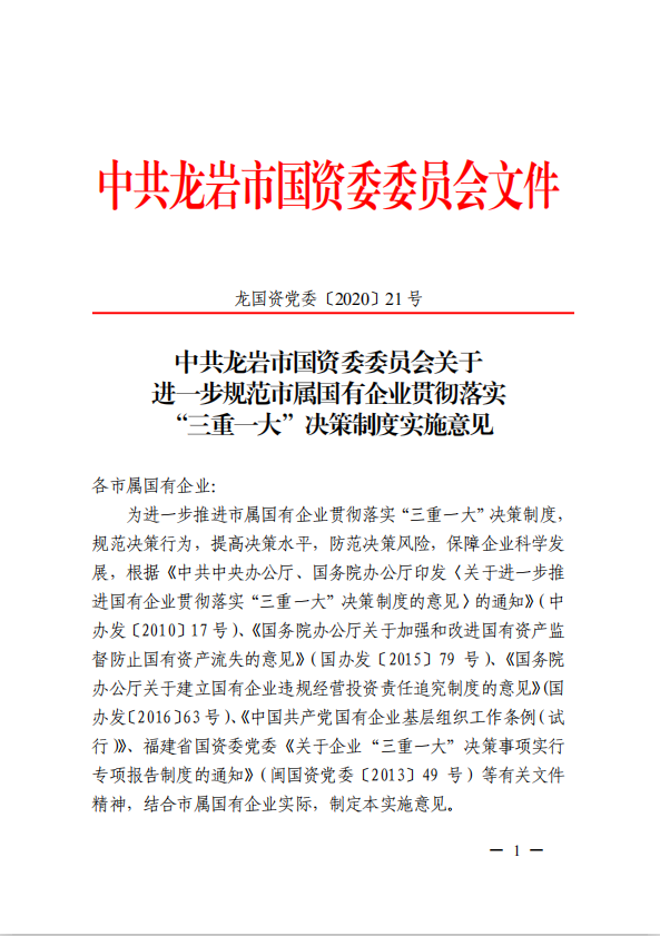 关于进一步规范市属国有企业贯彻落实“三重一大”决策制度实施意见(游艇会yth0008党委[2020]21号)