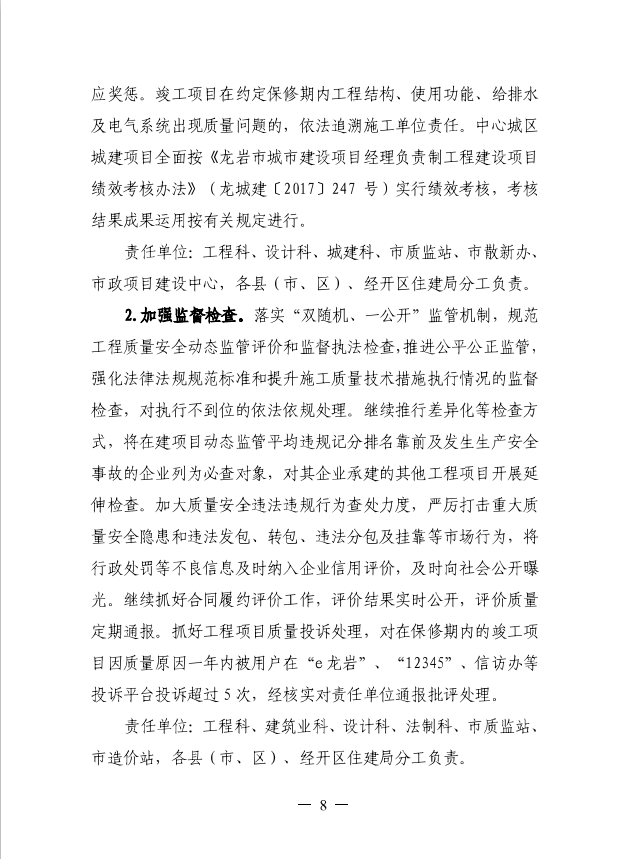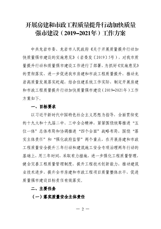 龙岩市住房和城乡建筑局关于印发开展房建和市政AYX爱体育质量提升行动加快质量强bob综合体育官网app下载设(2019-2021年)工作方案的通知