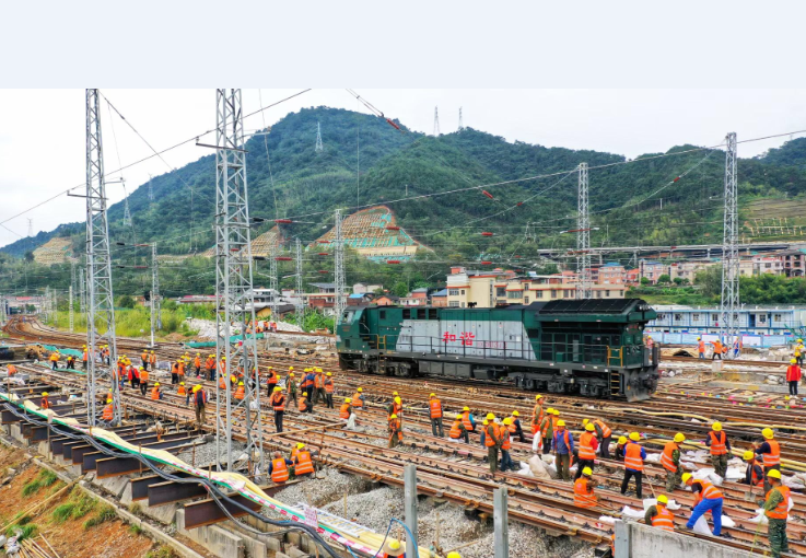 该项目顶进框架桥下穿铁山洋站,是中国铁路南昌局集团有限公司所属南方地区最大的编组场之一,施工存在三大难点,一是顶进框架桥跨度大,顶进风险较高;二是全程为铁路营业线施工,无法使用大型机器,只能依靠人力肩挑手扛,在施工工作面有限的情况下,同时还要保证列车营运安全;三是项目9月13日开工建筑,预计2022年春运前开放通行,时间紧、任务重。